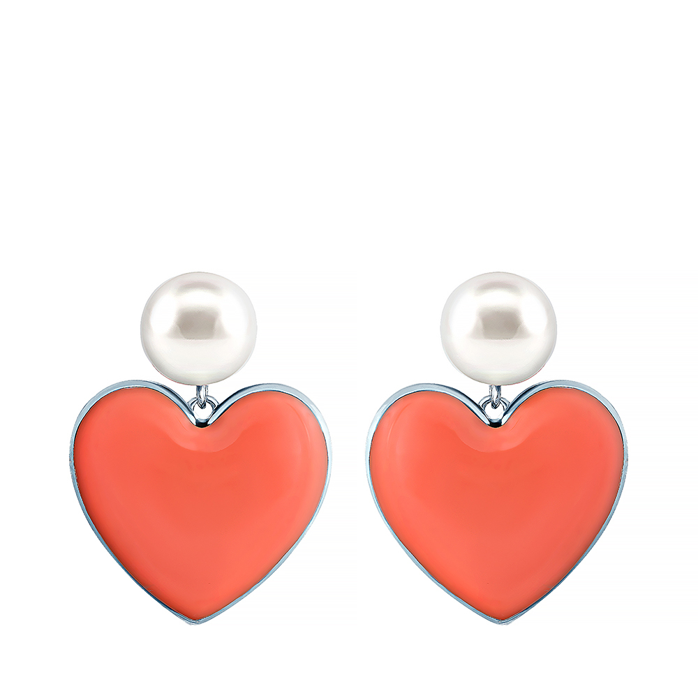 Пусеты из серебра с жемчугом, эмалью