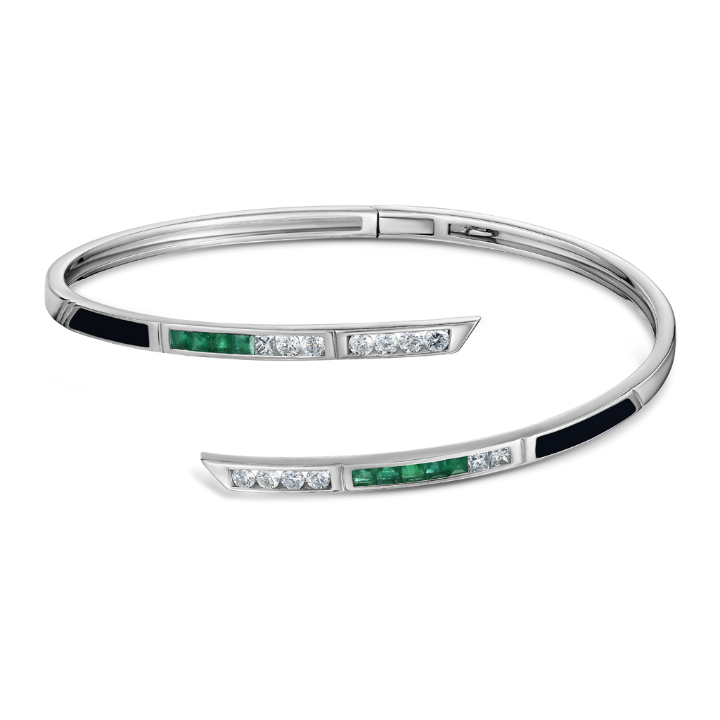 Кольцо из белого золота с изумрудами, эмалью, бриллиантами