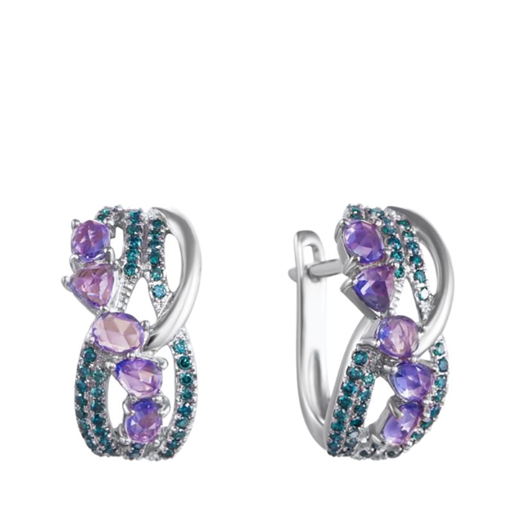 Серьги с английским замком из белого золота с бриллиантами, танзанитами