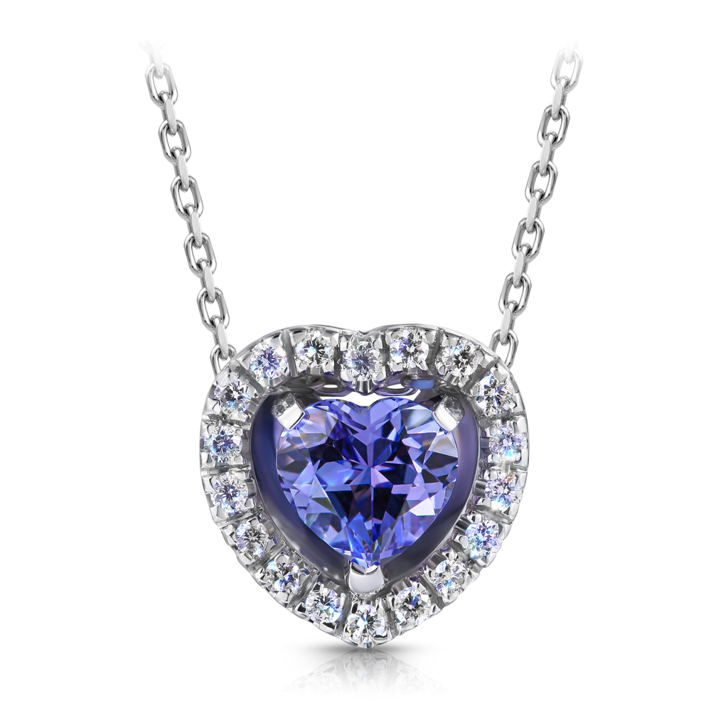 Колье из белого золота с бриллиантами, танзанитом, плетение якорное