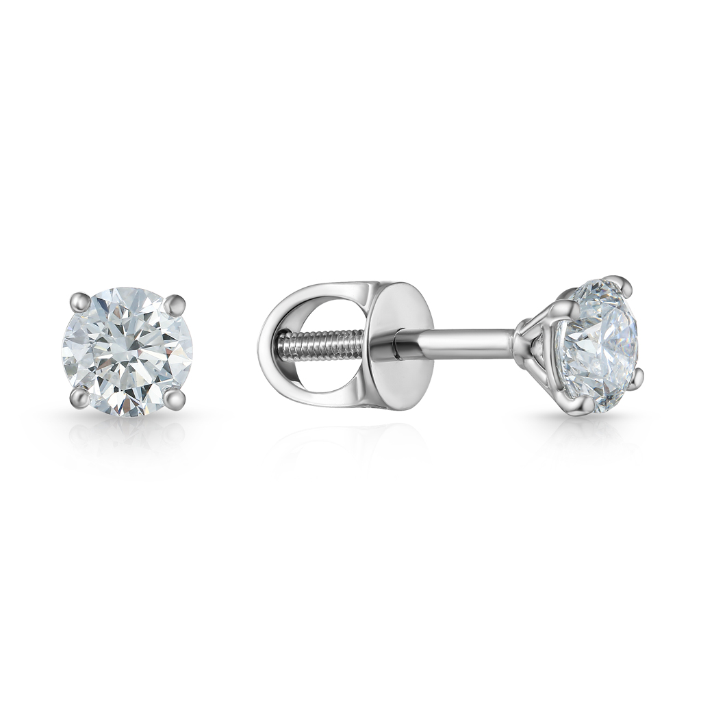 Пусеты из белого золота с бриллиантами, плетение якорное