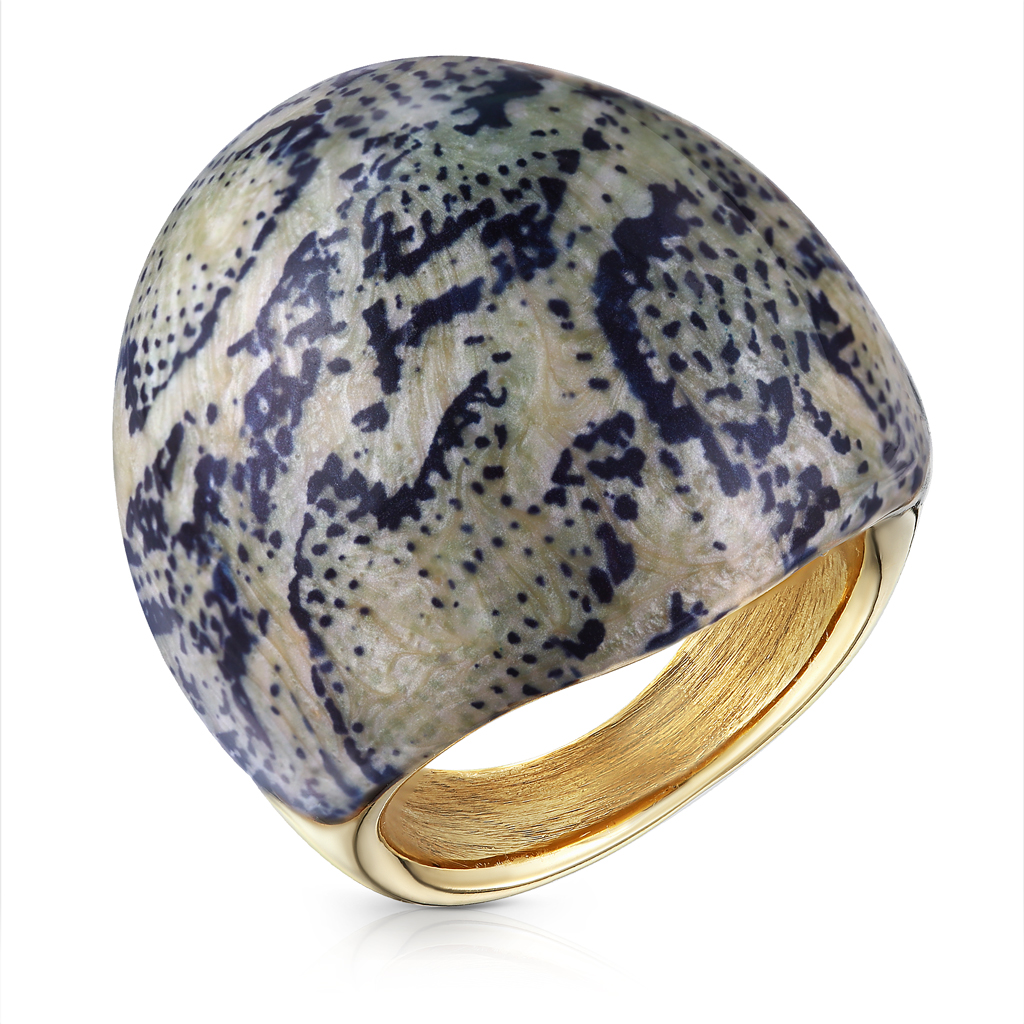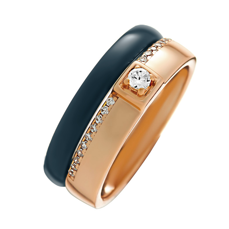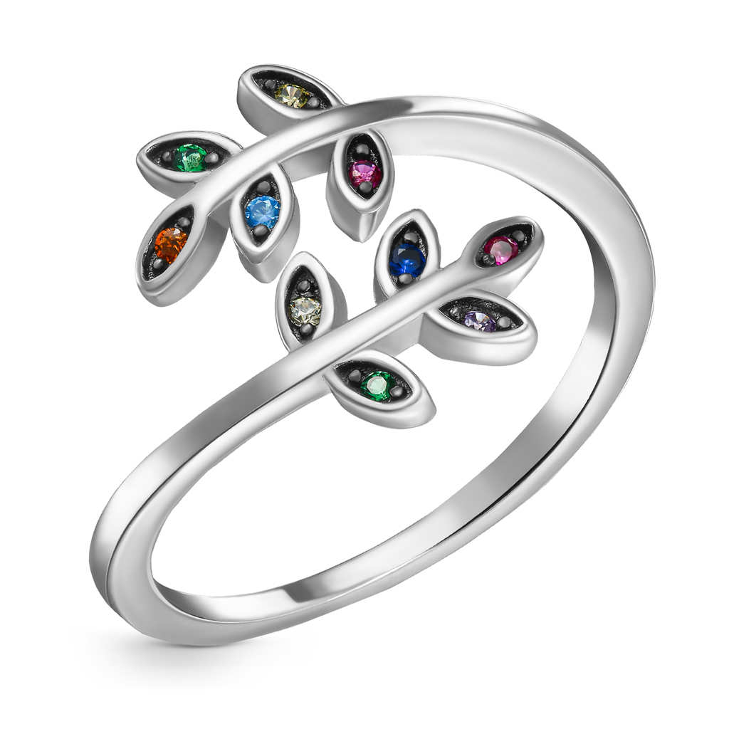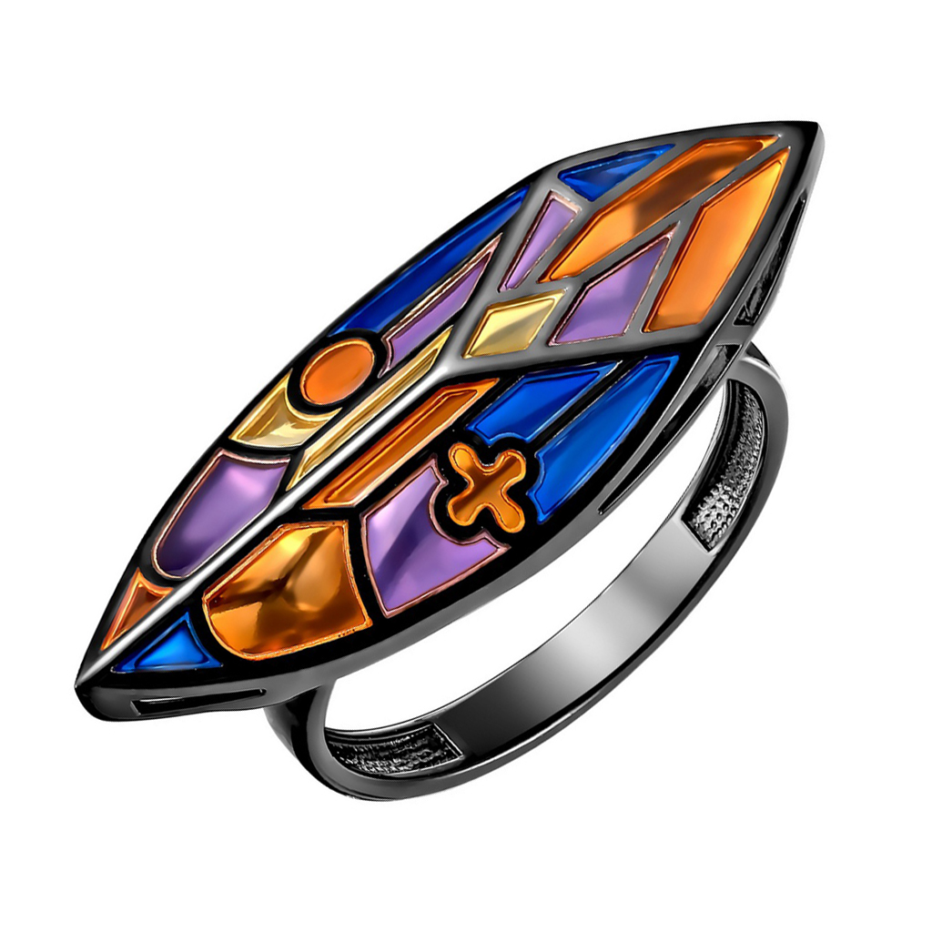 Кольцо из серебра с хризолитами и фианитами и эмалью