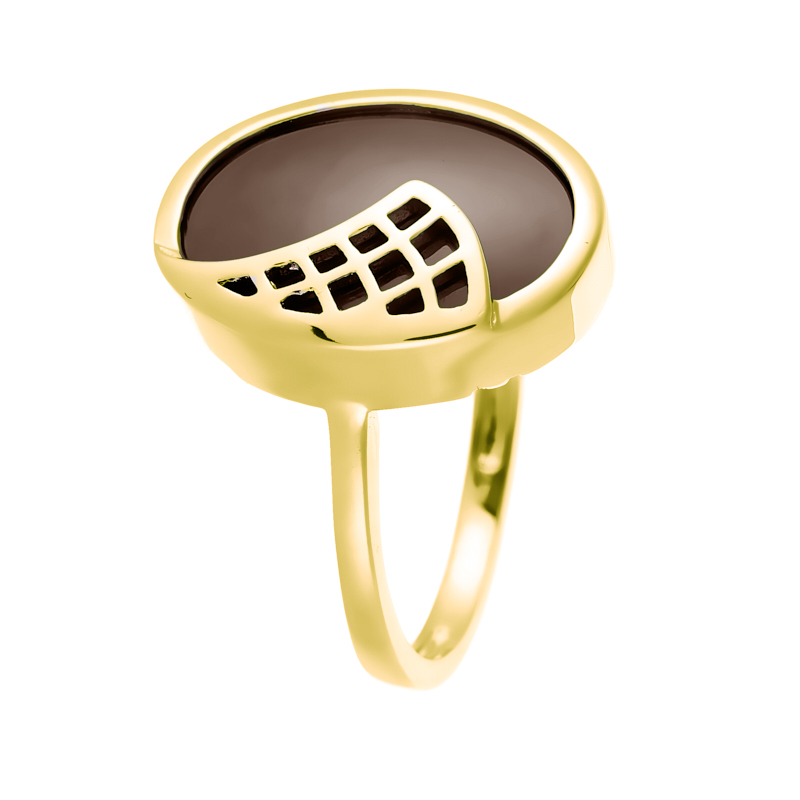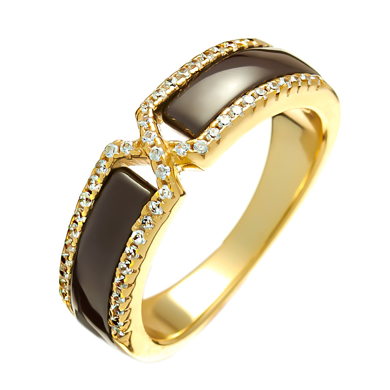 Кольцо из желтого золота с бриллиантом, бирюзой