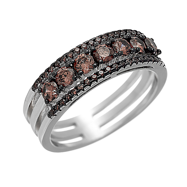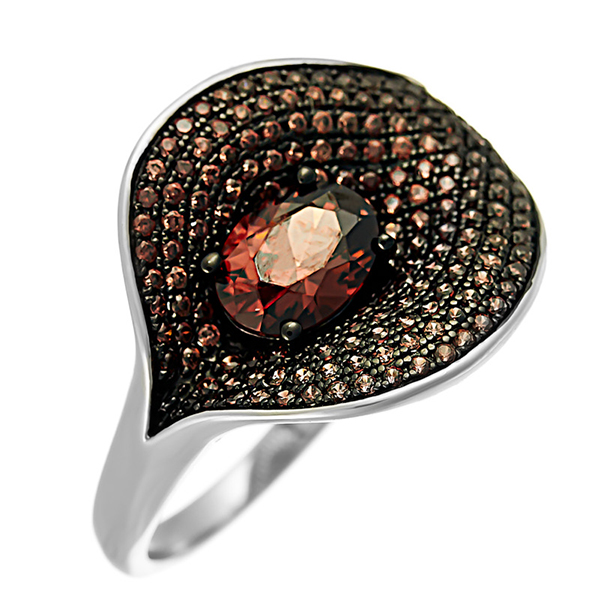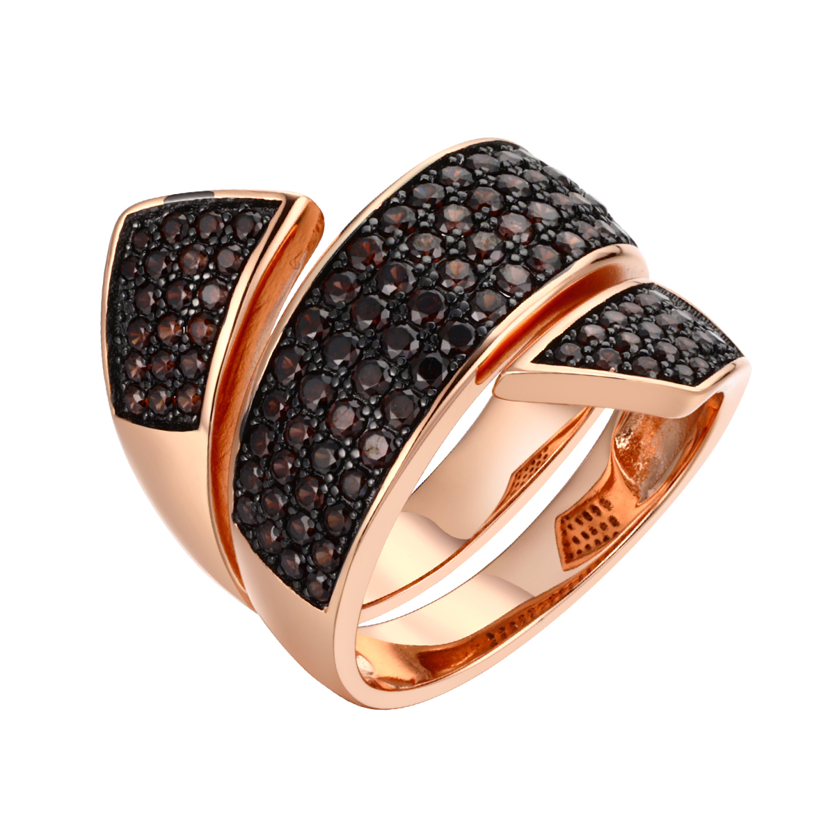 Кольцо из желтого золота с цаворитами, бриллиантами и аметистом