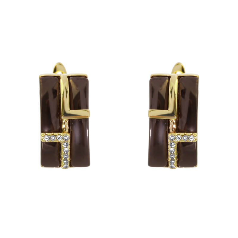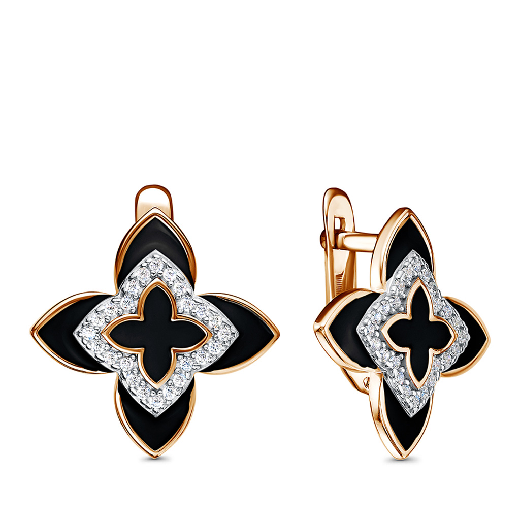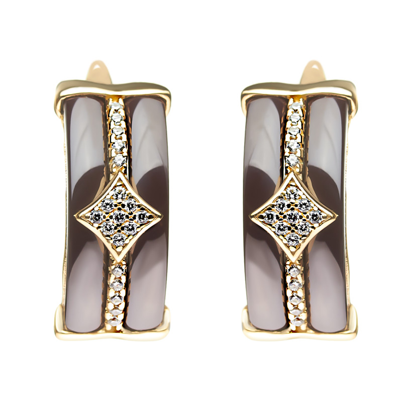 Серьги детские из серебра с эмалью и фианитом и золочением