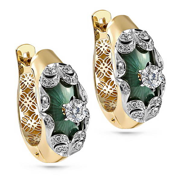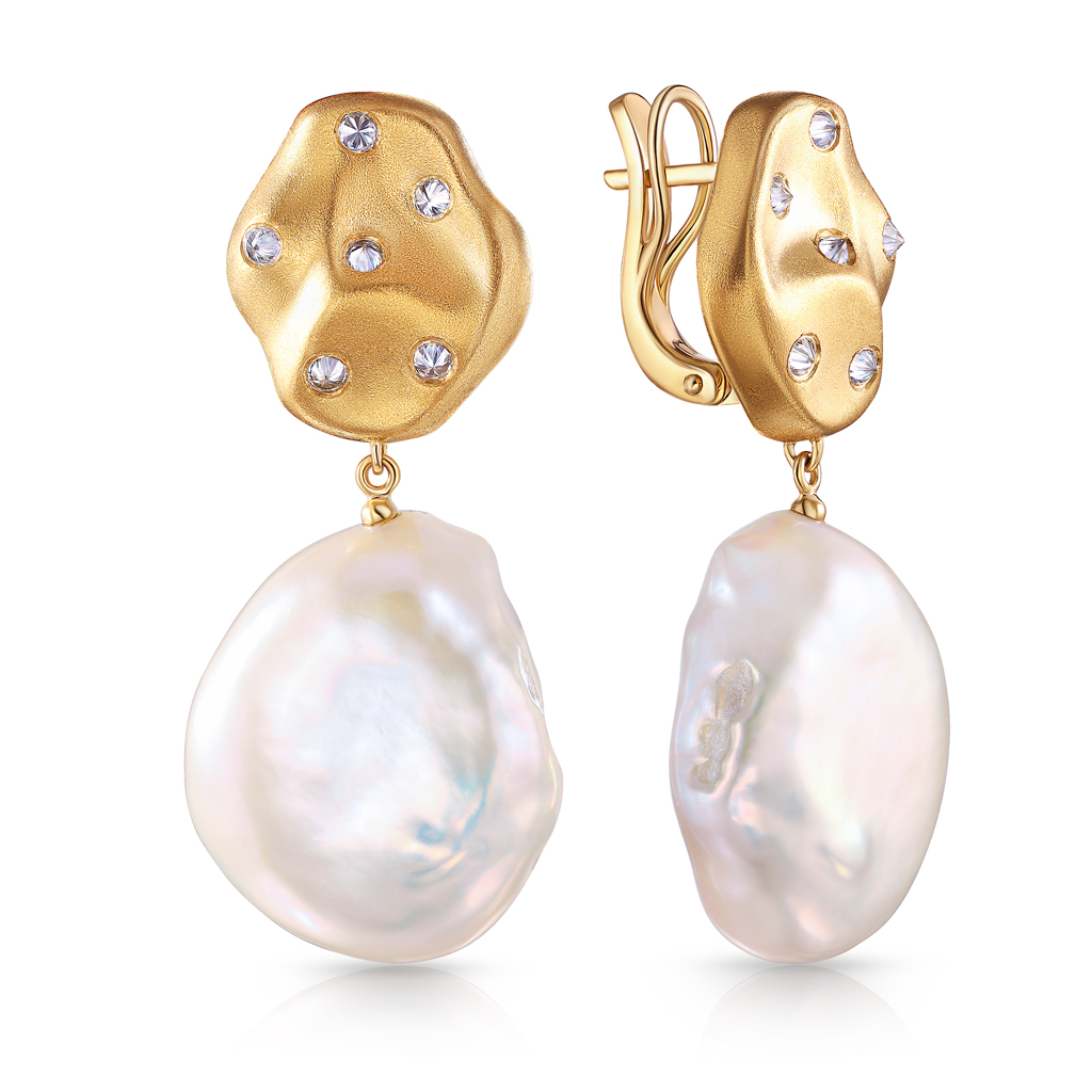 Серьги с английским замком из желтого золота с жемчугом, бриллиантами