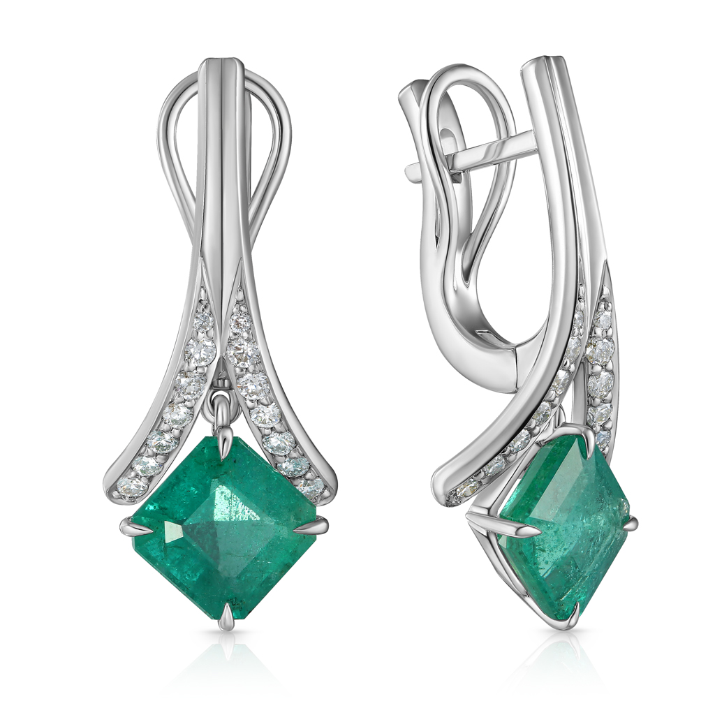 Серьги с гранатом, бриллиантами с английским замком из красного золота