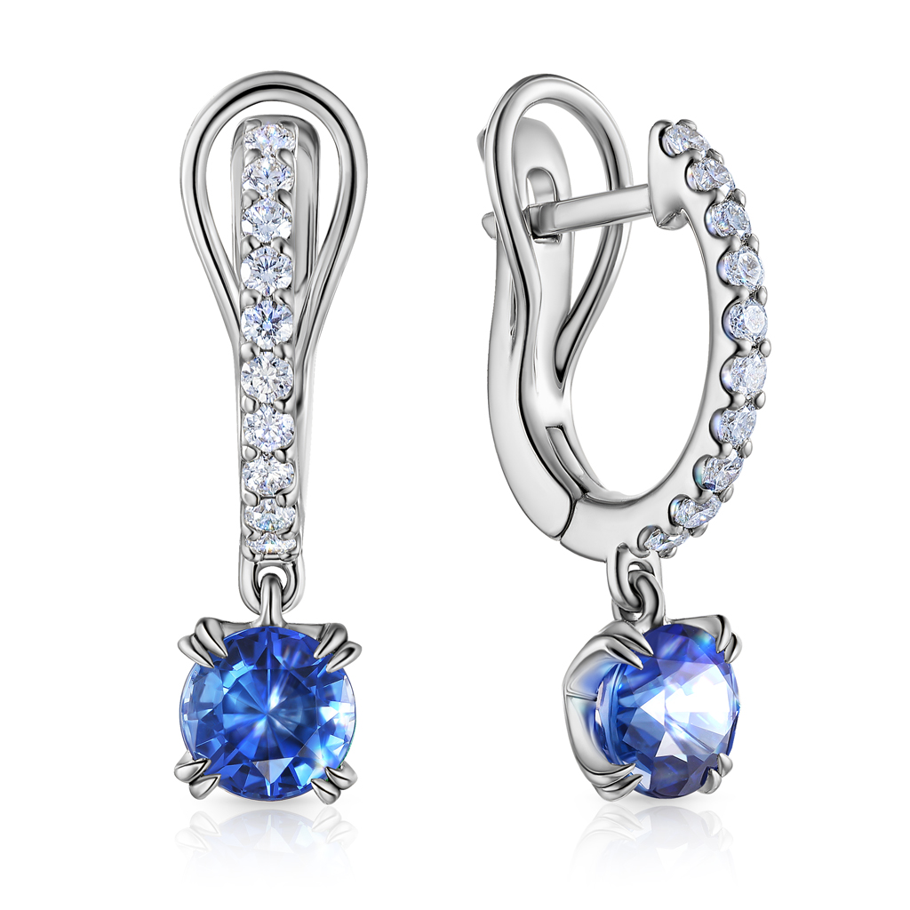 Серьги с английским замком из красного золота с бриллиантами, аметистом, сапфиром, аметистом