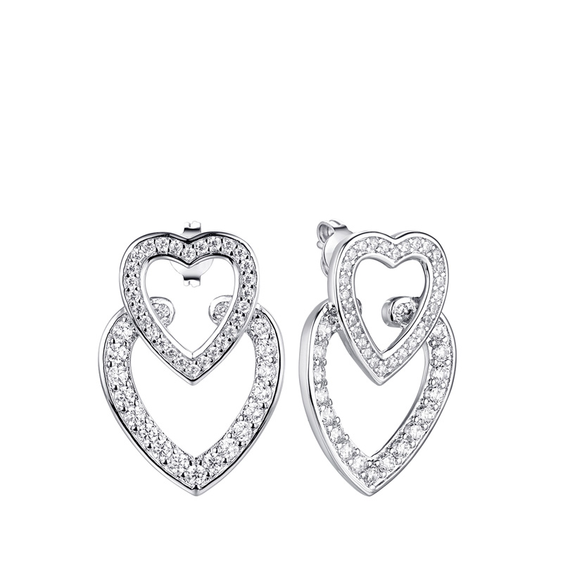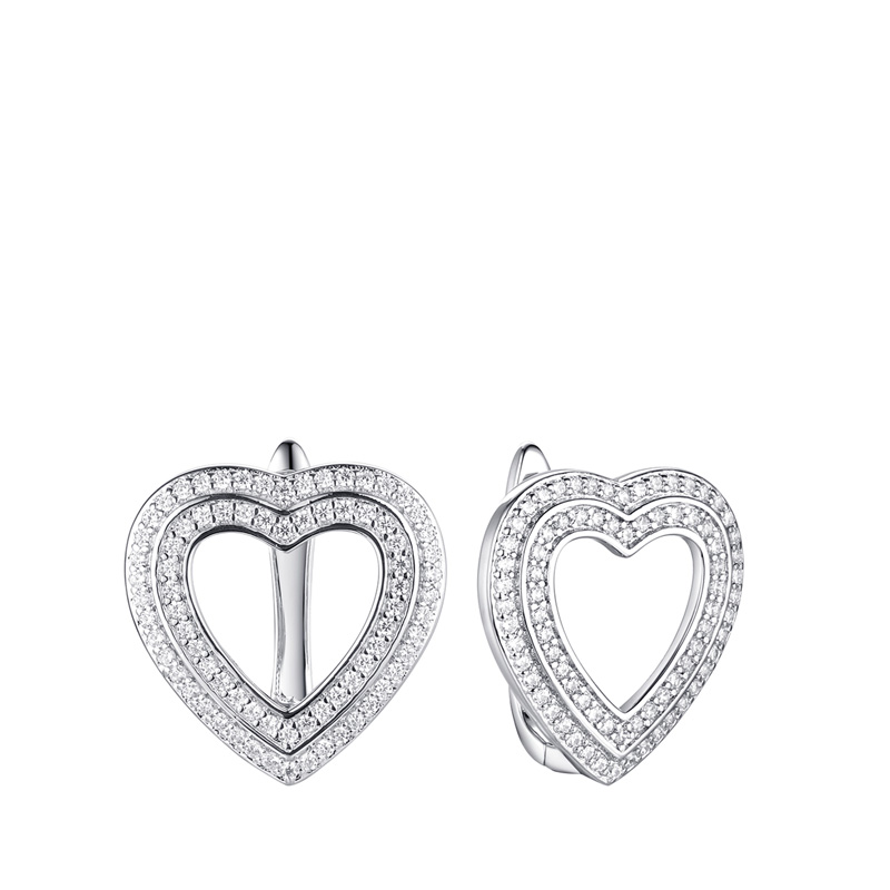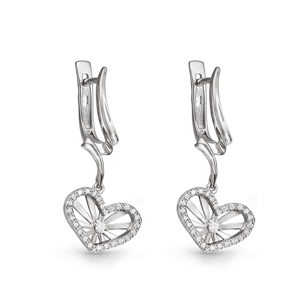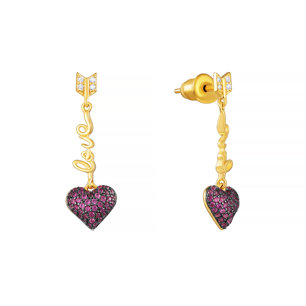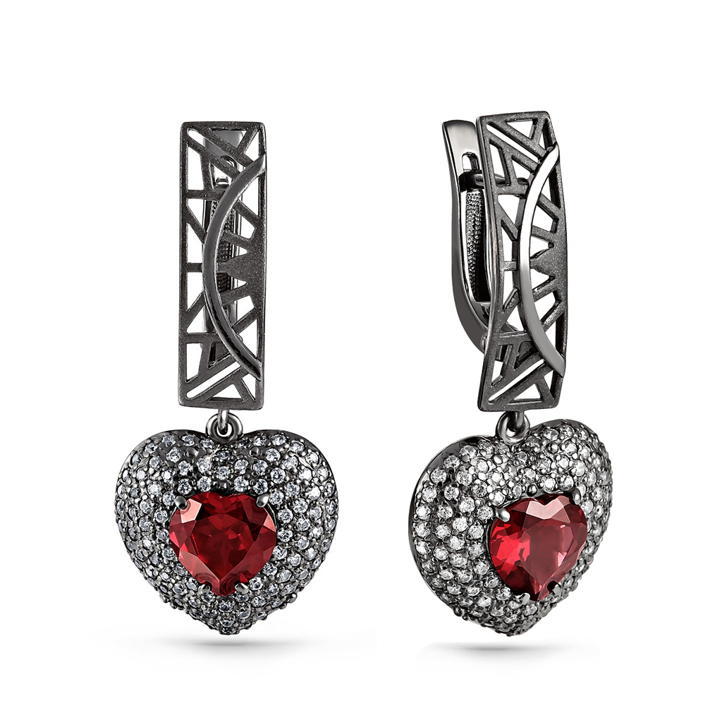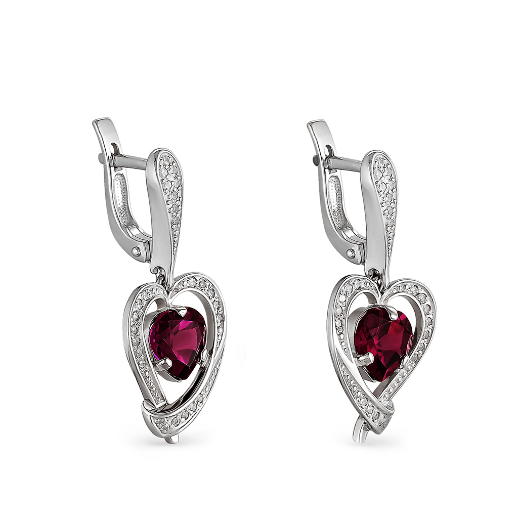Серьги с английским замком из серебра с перламутром, рубином, фианитом