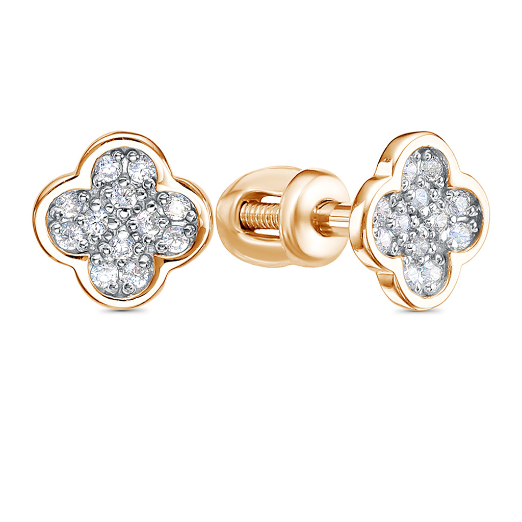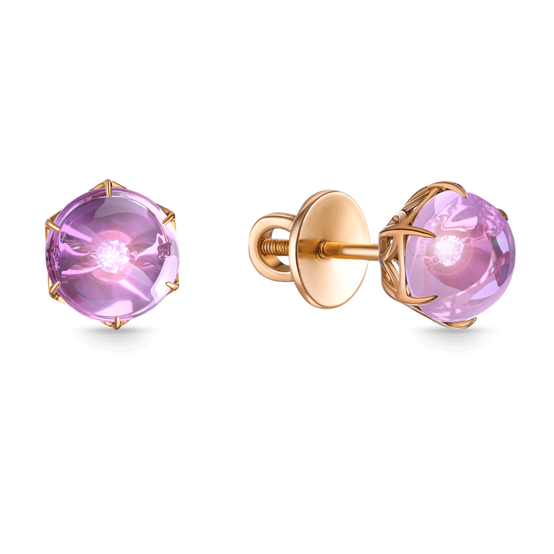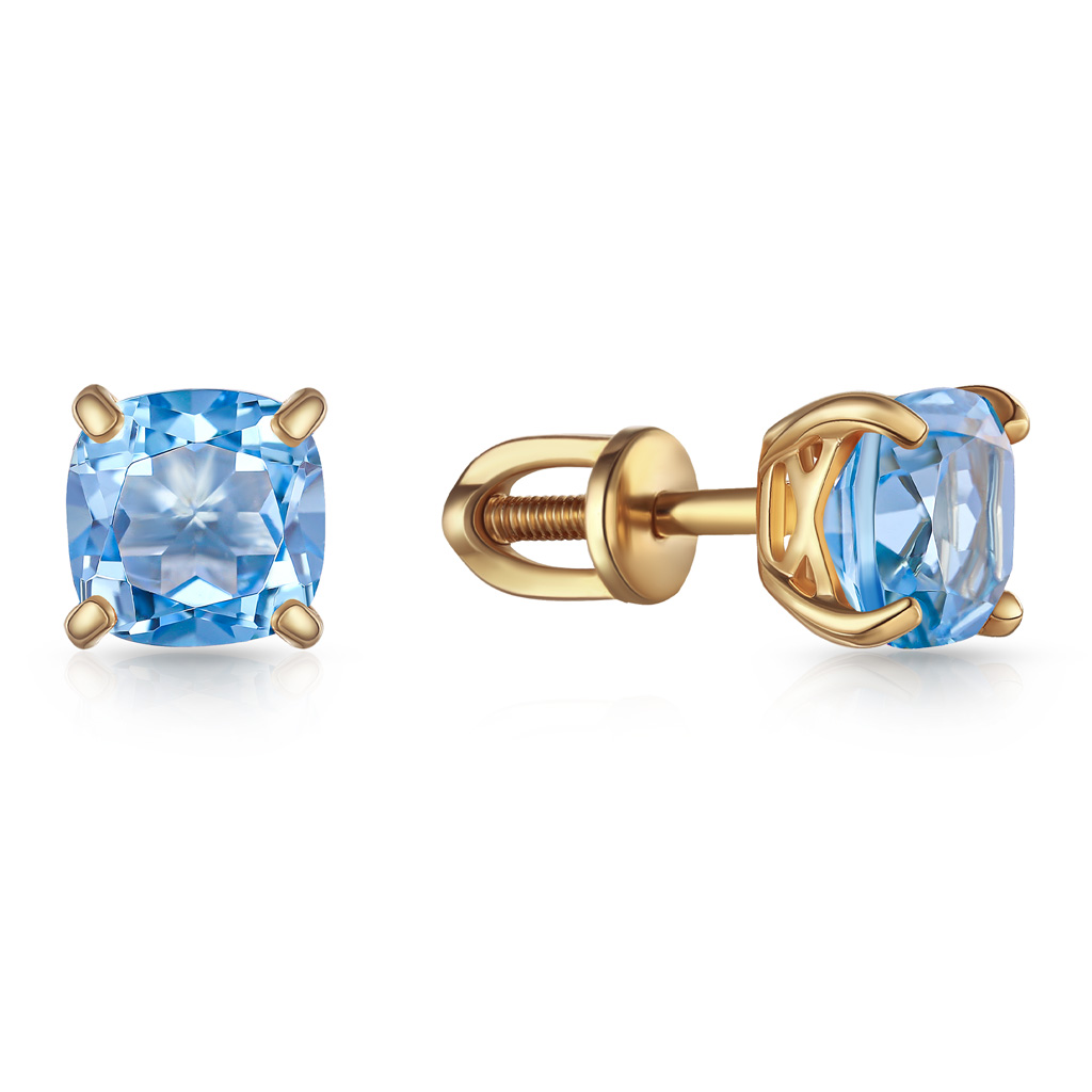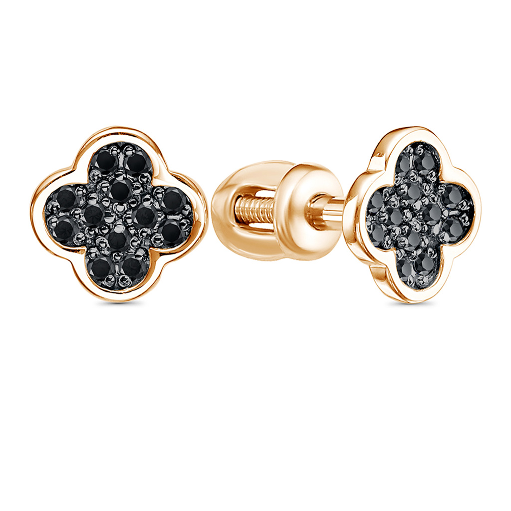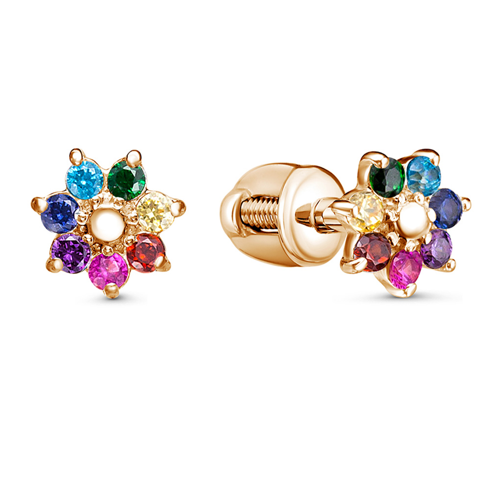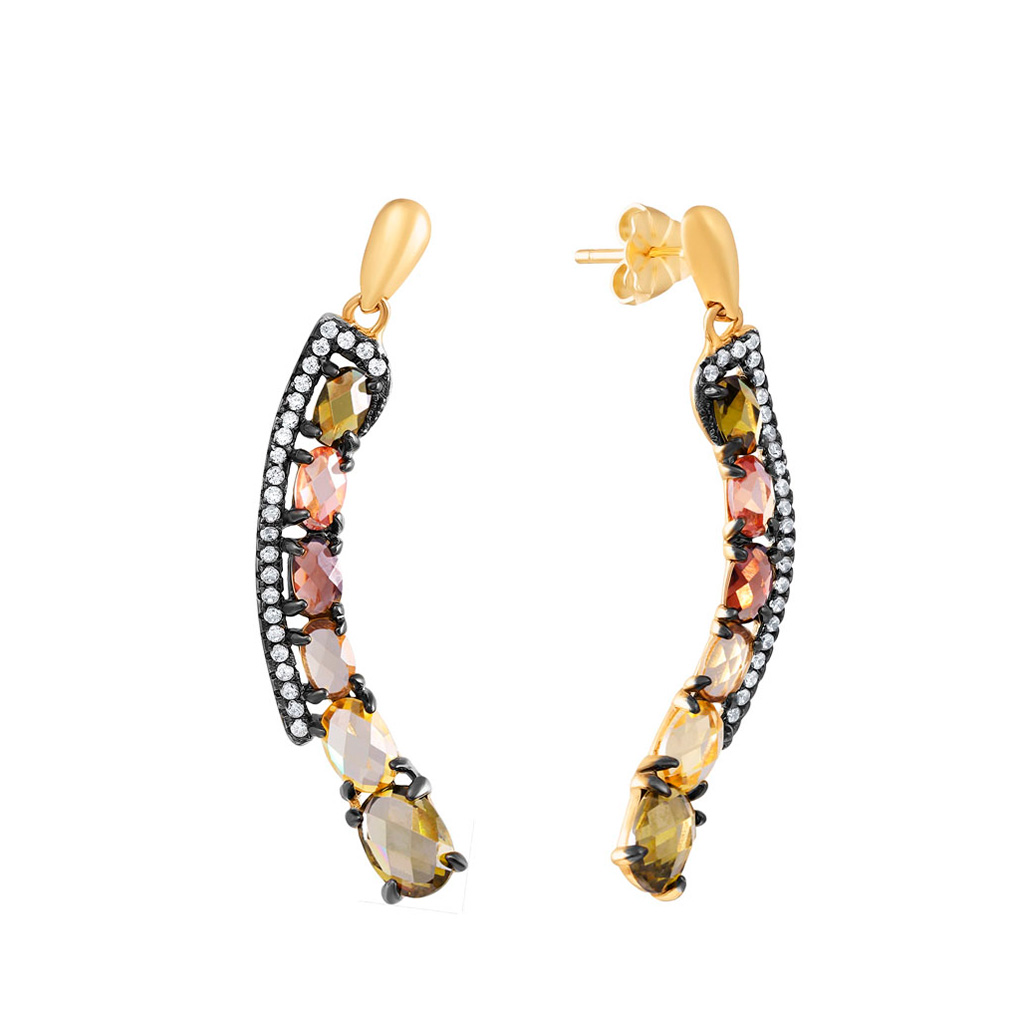 Пусеты из серебра с фианитом, корундом и золочением