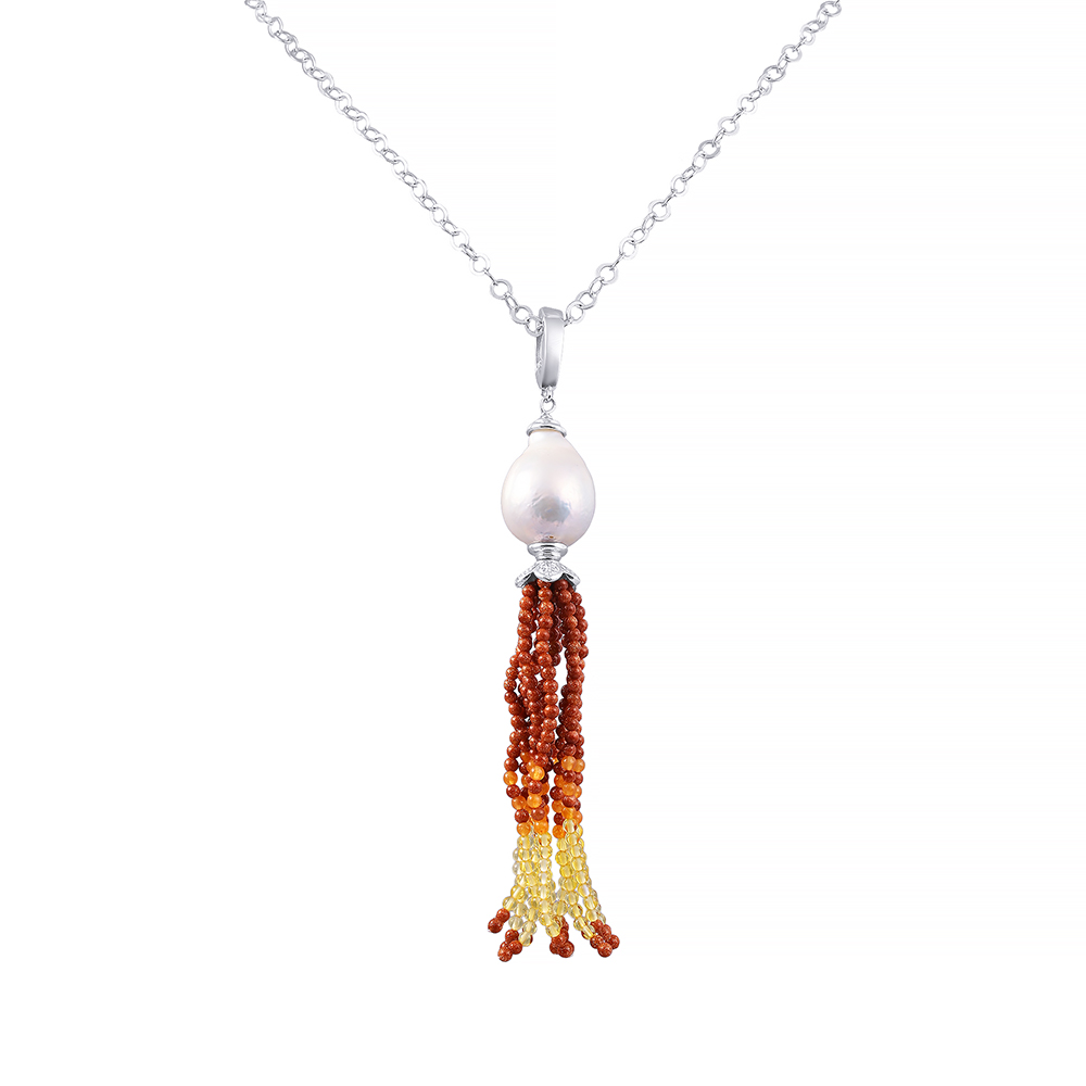 Подвеска из серебра с цитрином, авантюрином, жемчугом