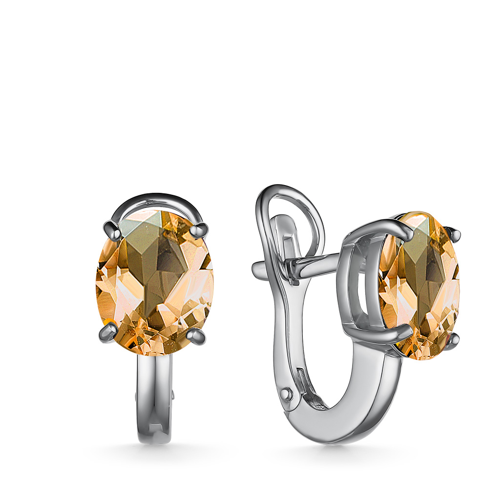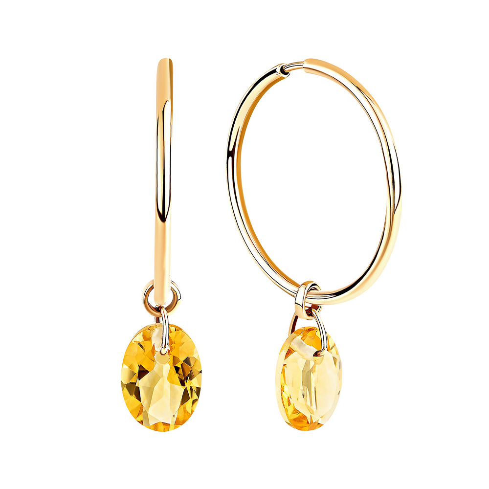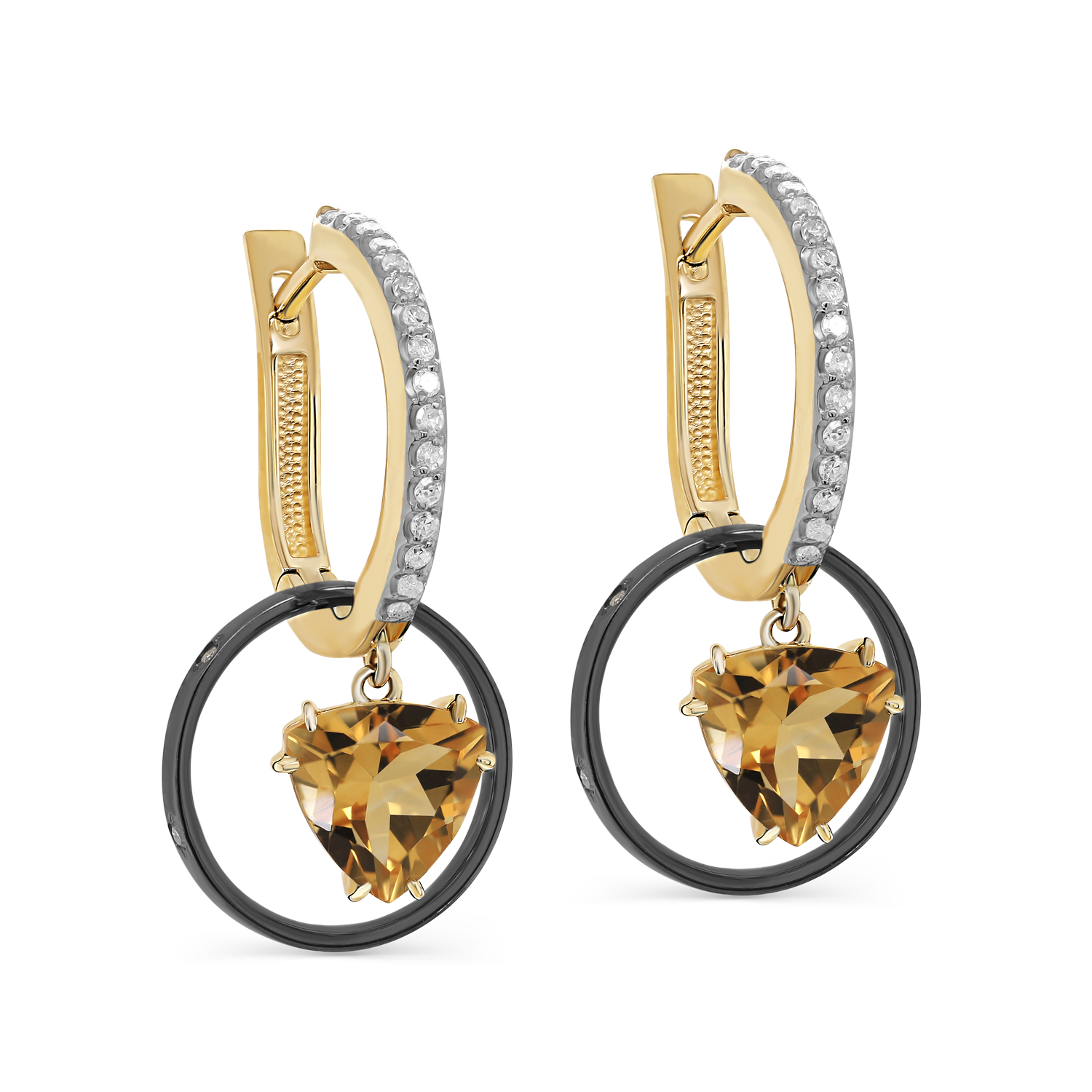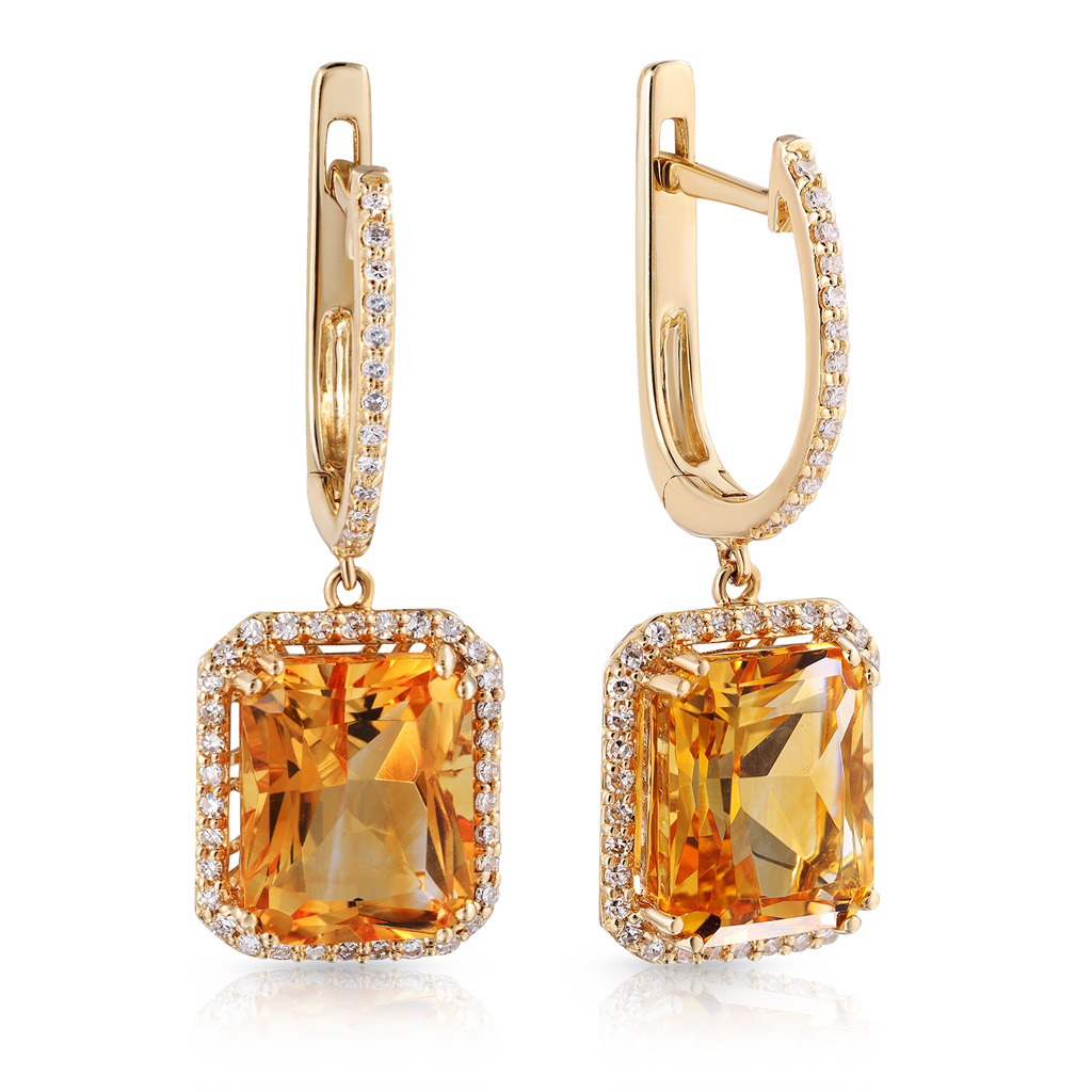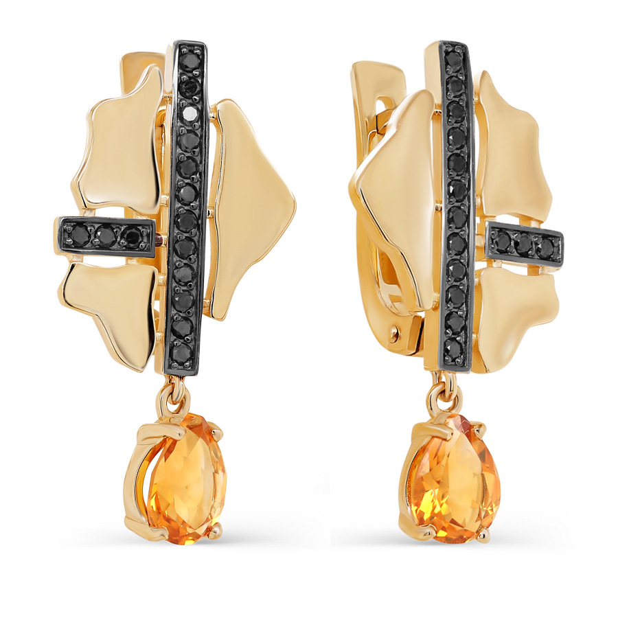 Серьги с английским замком из желтого золота с бриллиантами, цитринами