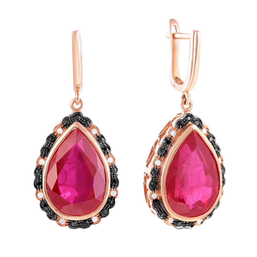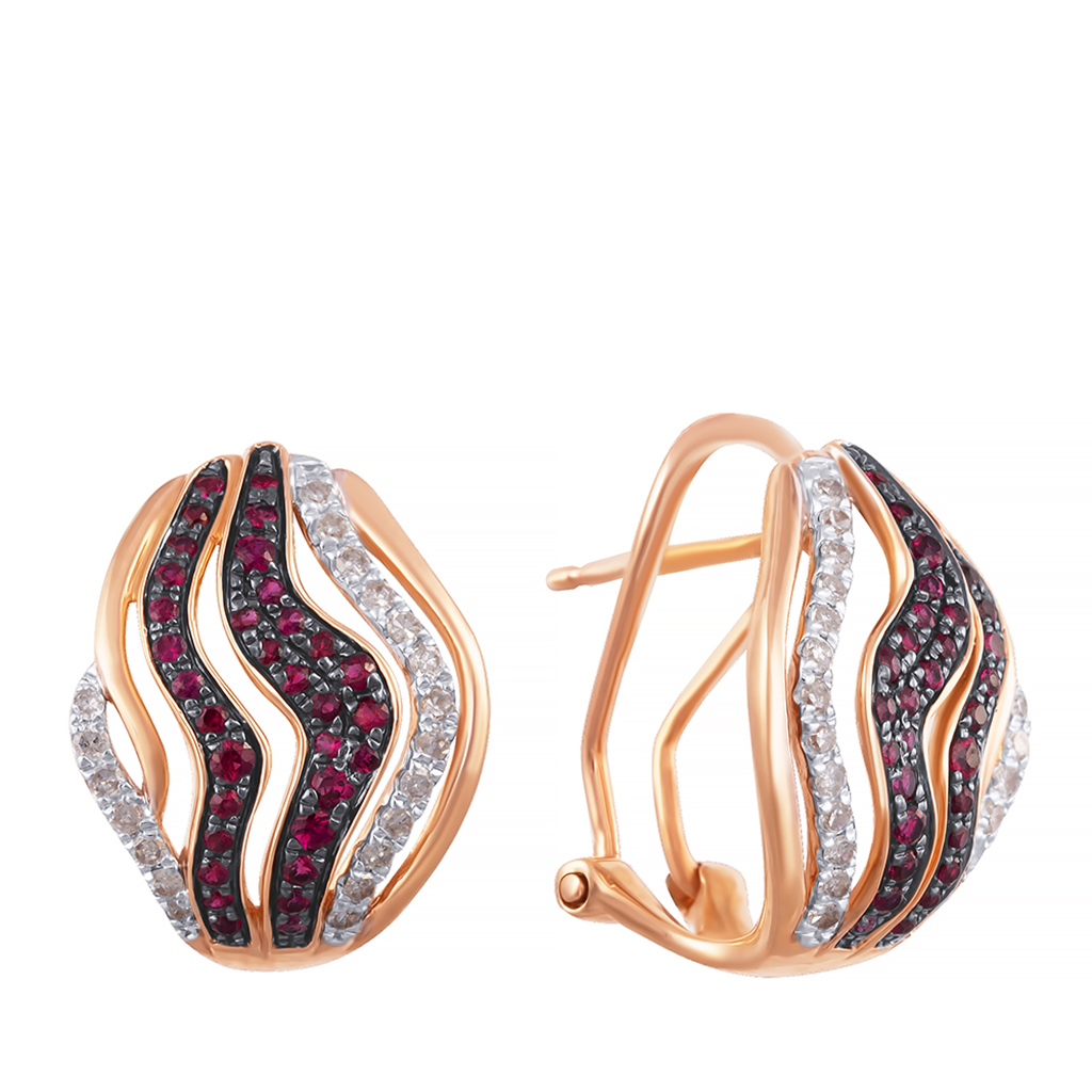 Серьги с английским замком из красного золота с бриллиантами, сапфирами, родолитами, топазами