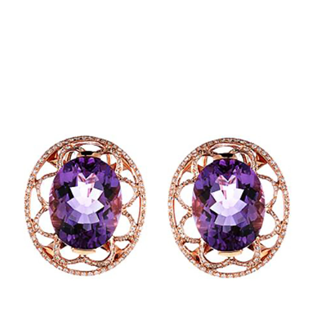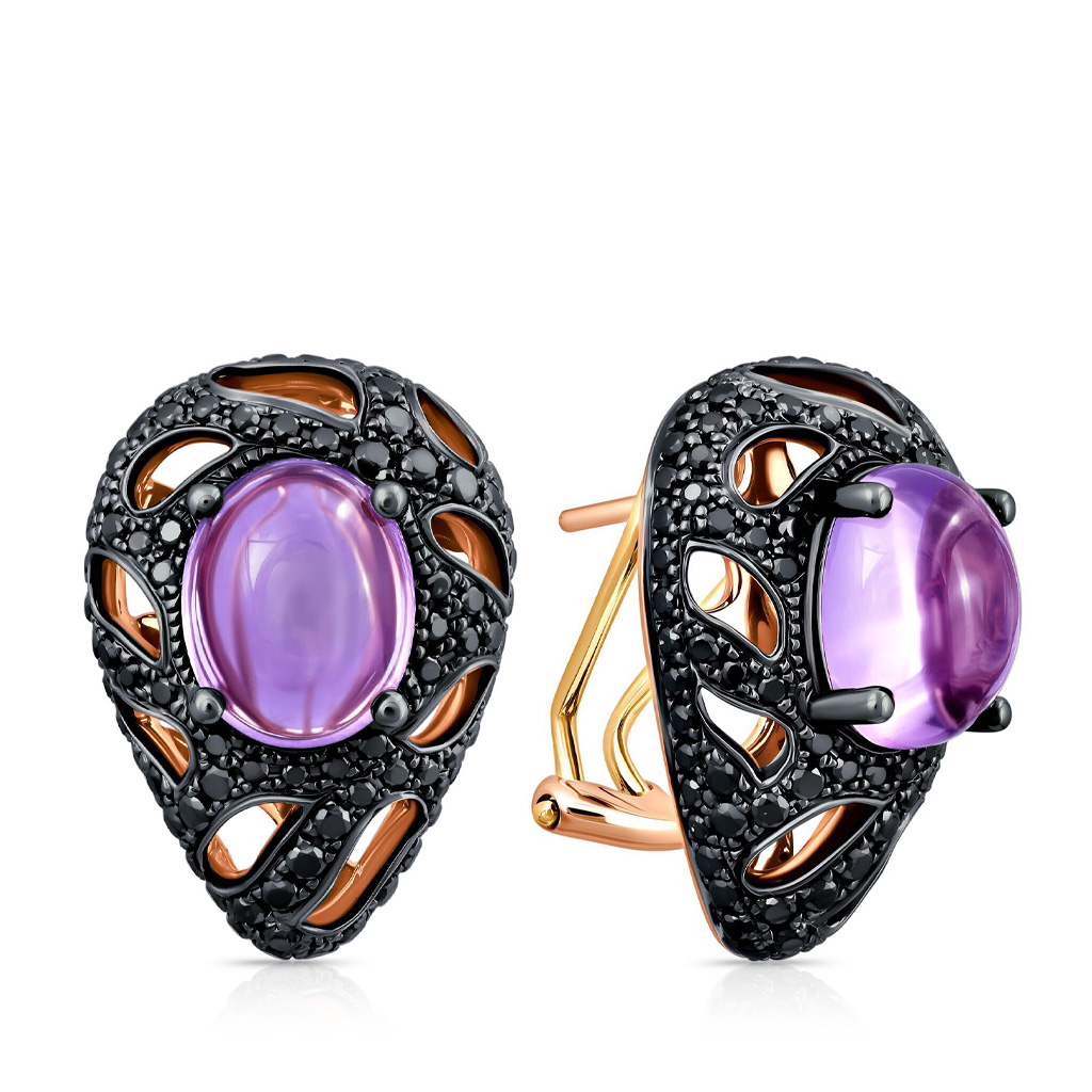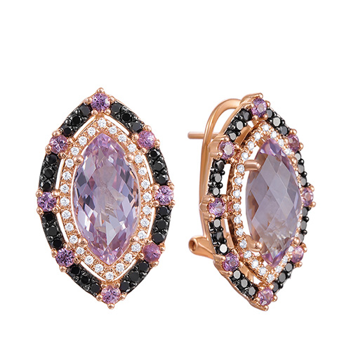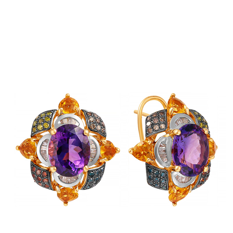 Серьги из красного золота с бриллиантами, аметистами и цитринами