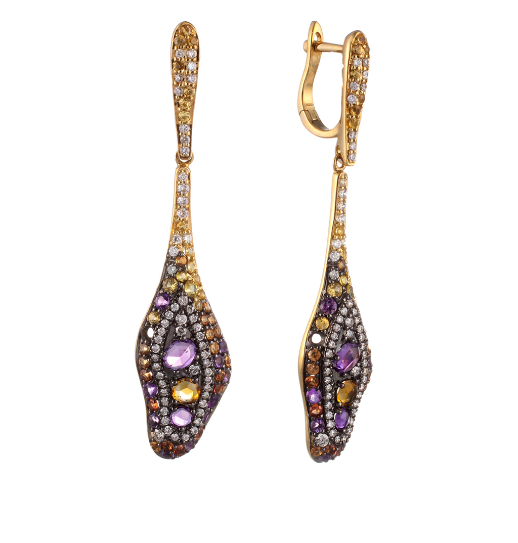 Серьги из красного золота с сапфирами, топазами, аметистами