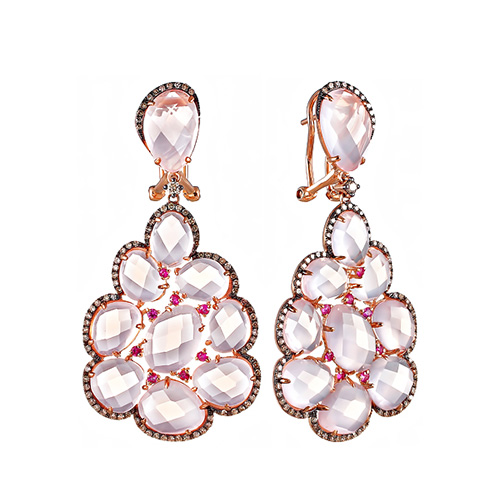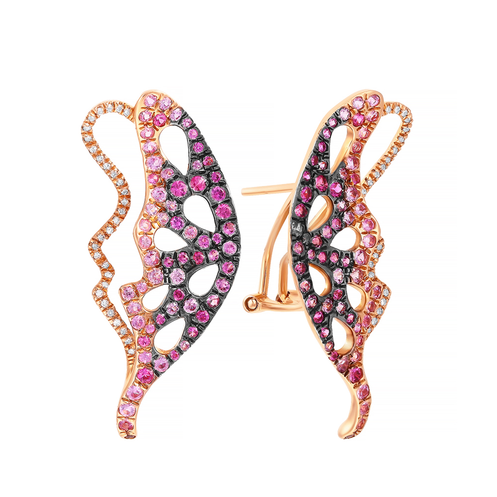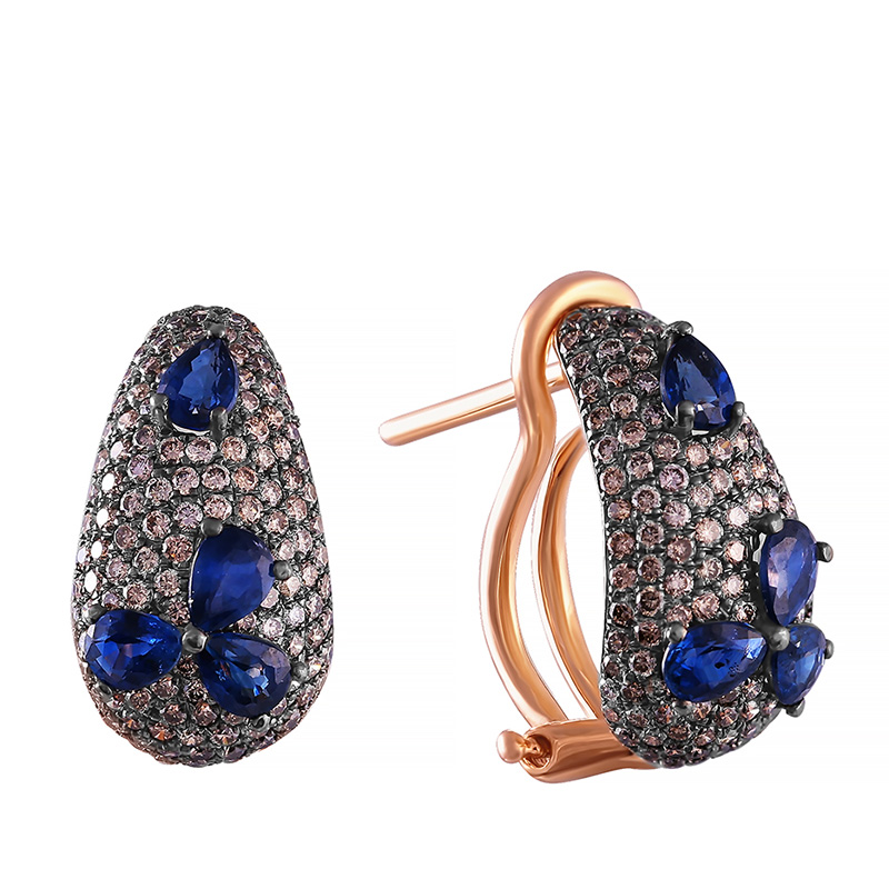 Серьги из красного золота с бриллиантами, сапфирами, кварцами