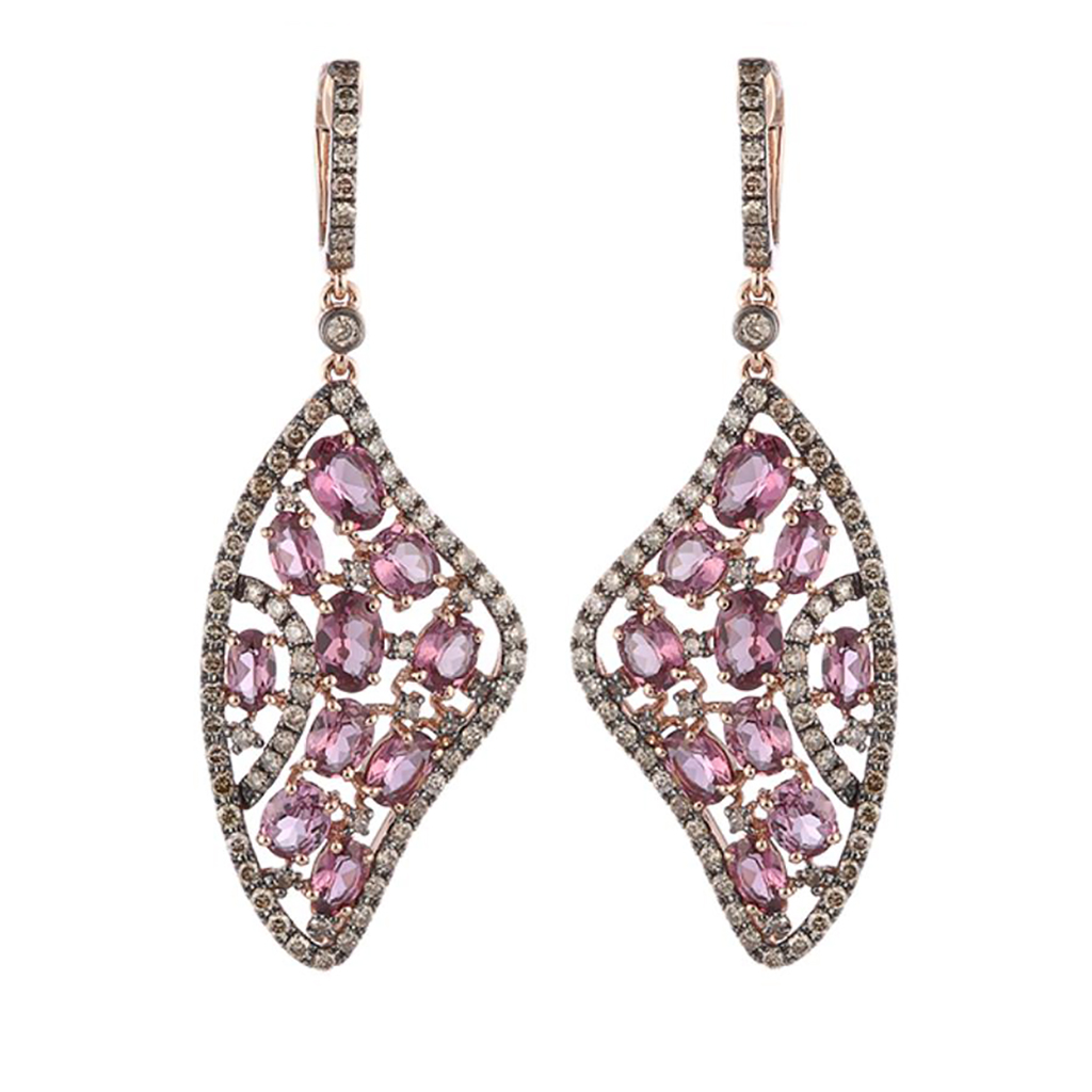 Серьги с гранатом, бриллиантами, сапфирами, рубинами, цаворитами, аметистами из красного золота