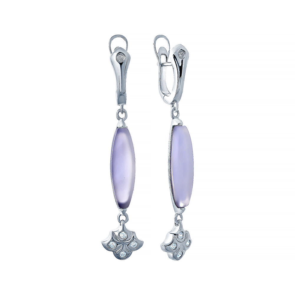 Серьги с английским замком из серебра с халцедоном, фианитом
