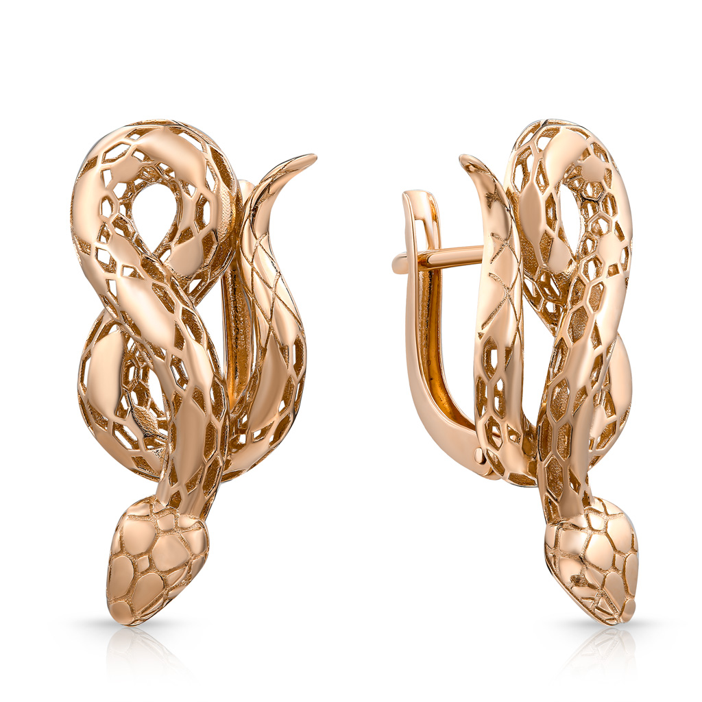 Серьги с английским замком из красного золота с кварцами, бриллиантами