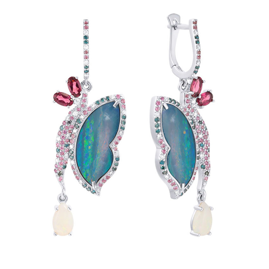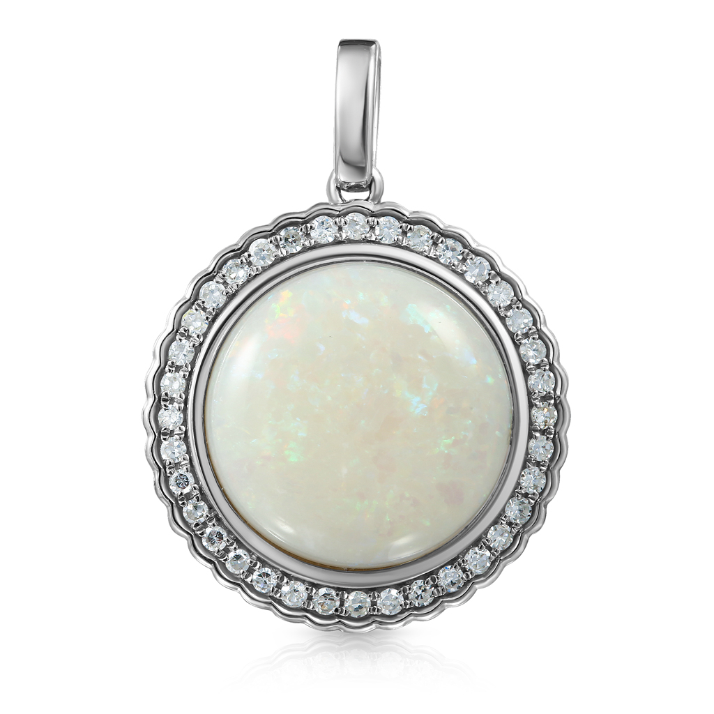 Серьги с английским замком из белого золота с бриллиантами, опал