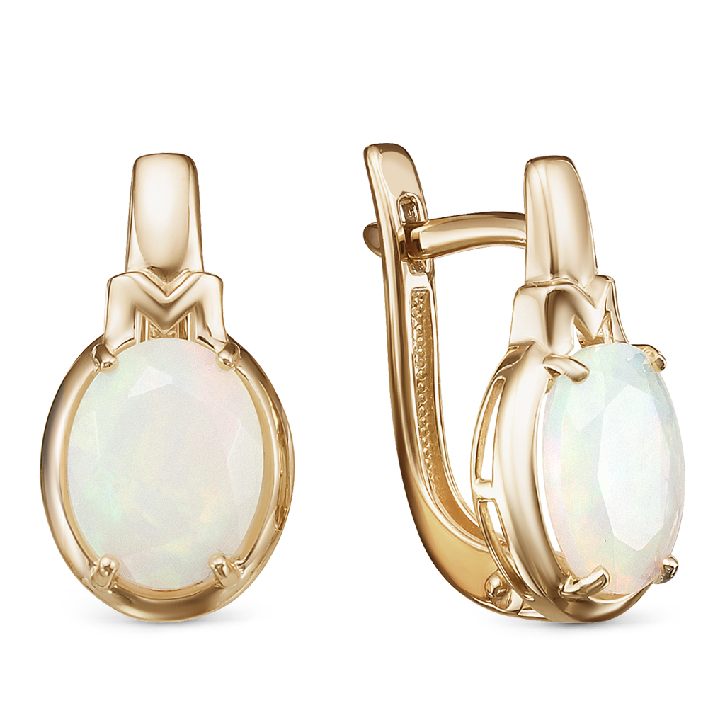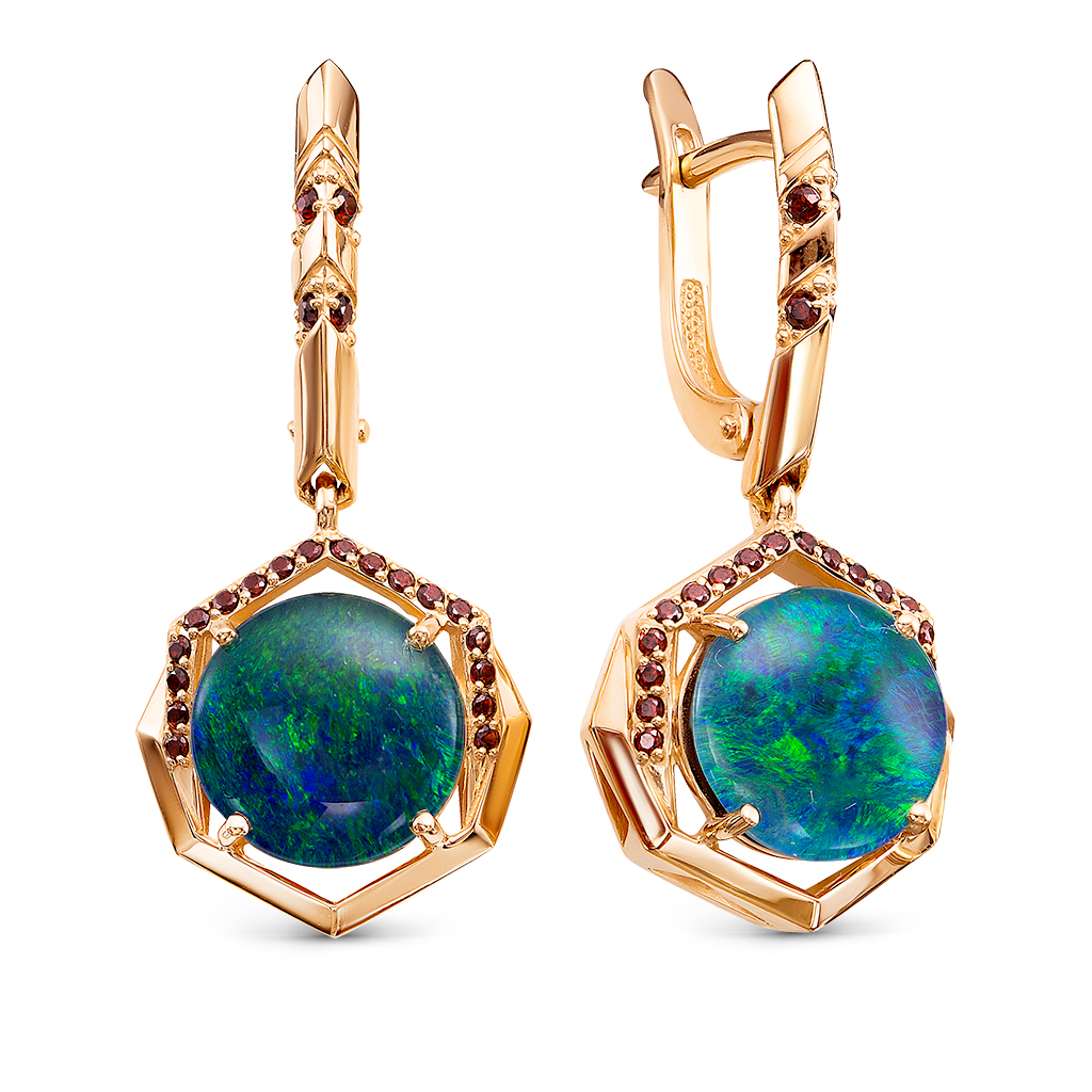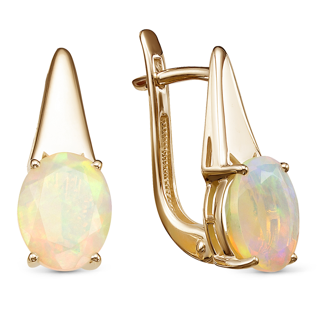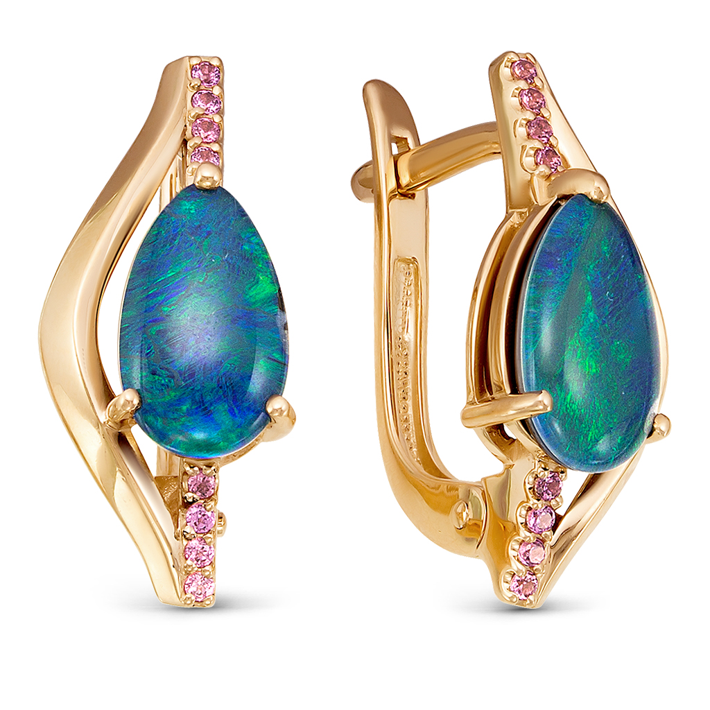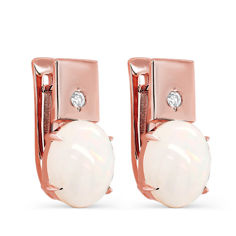Серьги с английским замком из красного золота с бриллиантами и опалами