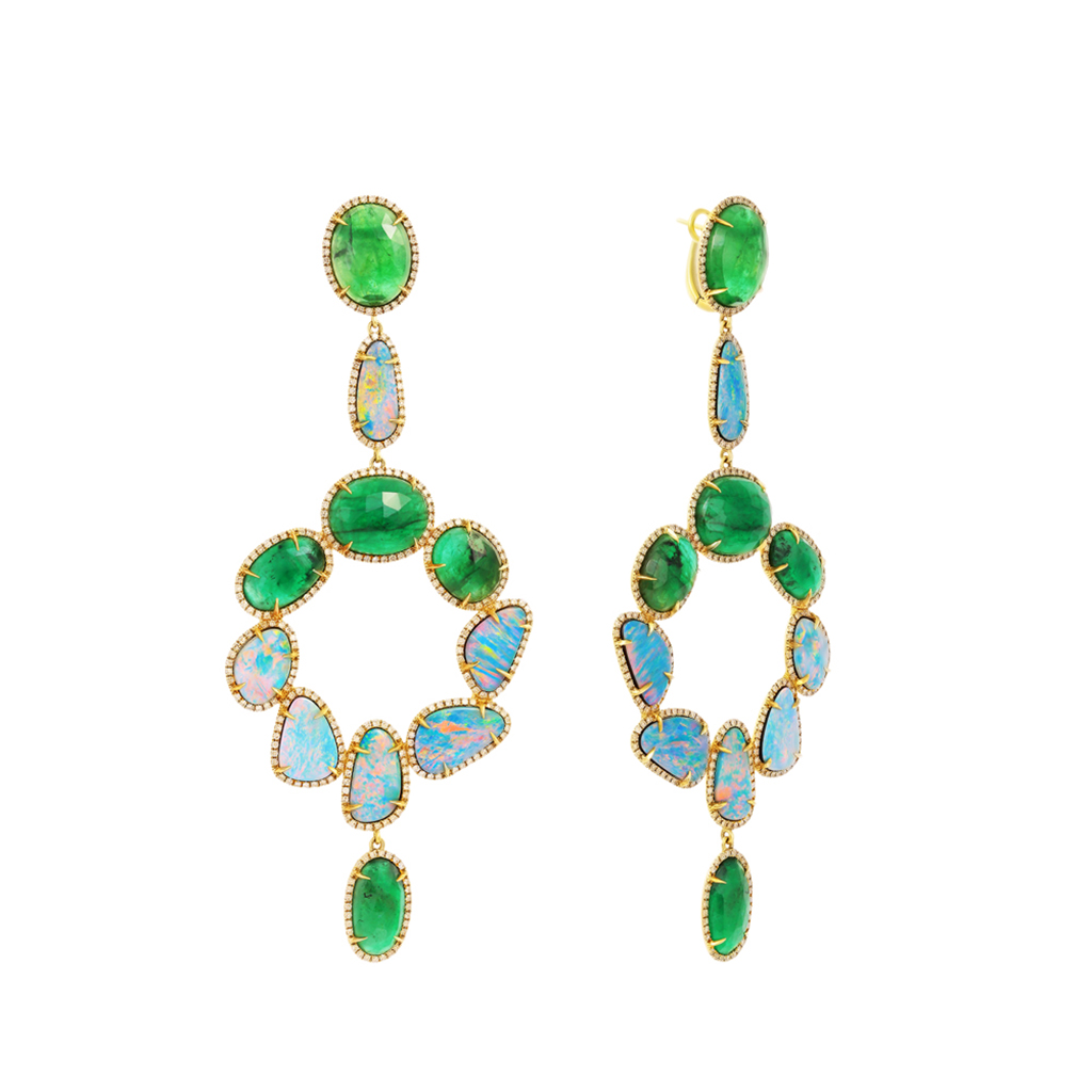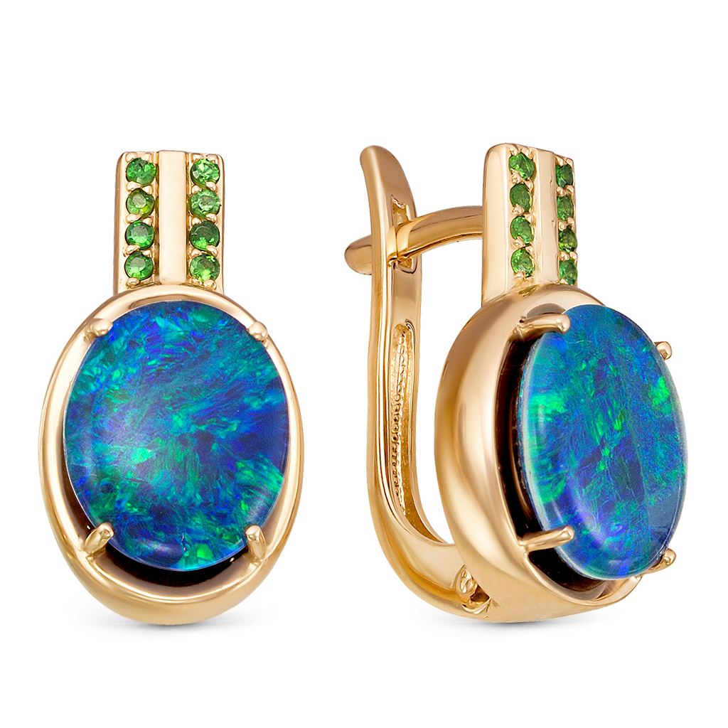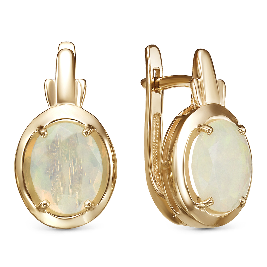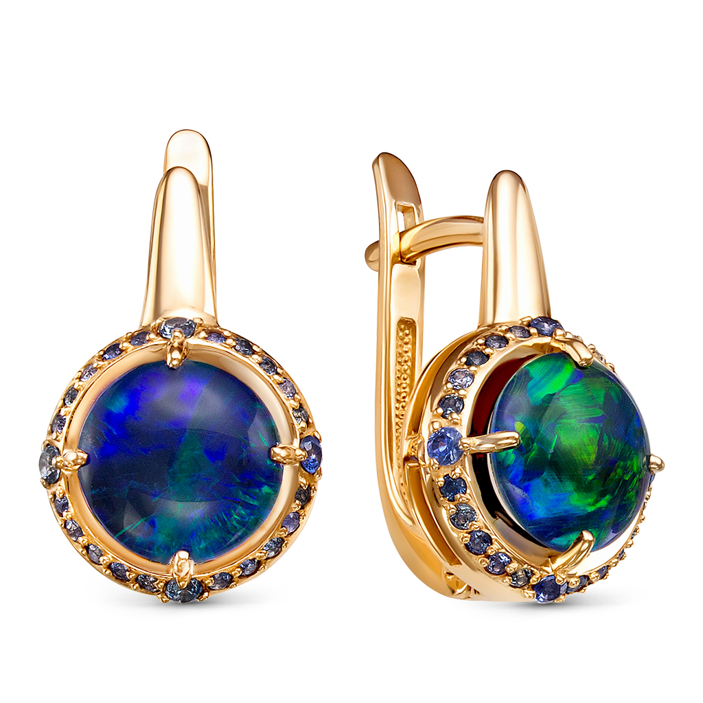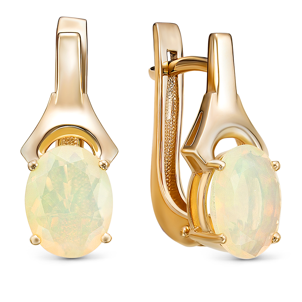Серьги с английским замком из красного золота с бриллиантами и опалами