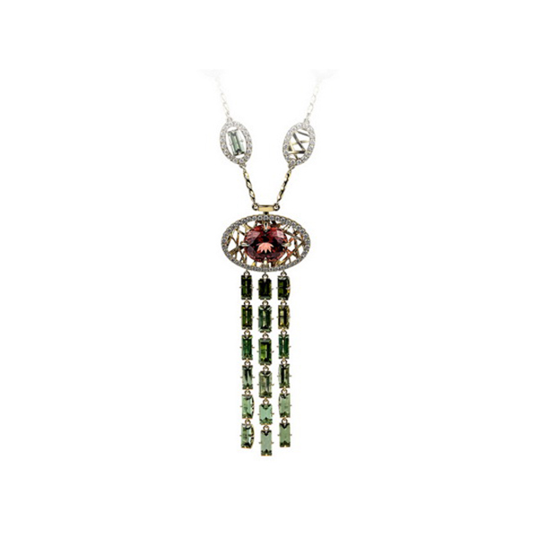 Колье из белого золота с бриллиантами и топазом, плетение якорное