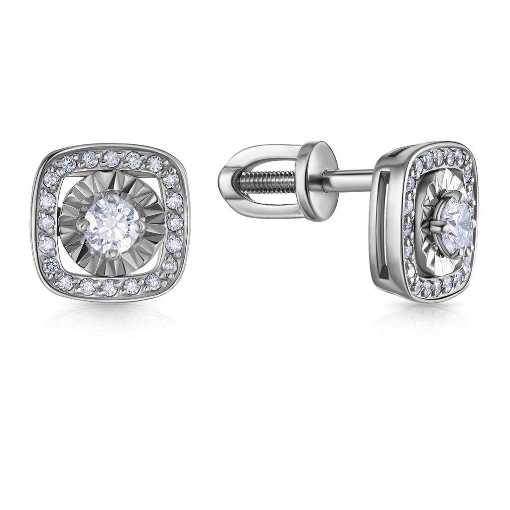 Пусеты из белого золота с бриллиантами, плетение якорное