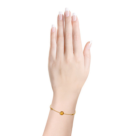 Браслет декоративный из желтого золота с цитрином, плетение якорное