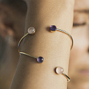 Браслет декоративный из желтого золота с кварцем и аметистом