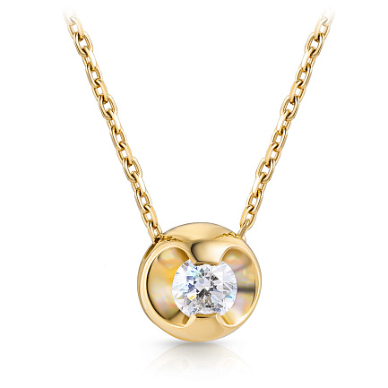 Изящное колье из уникальной коллекции «Отражение» выполнено из желтого золота и инкрустировано роскошным бриллиантом. Благодаря специальной технологии - многоступенчатой лазерной обработке, поверхность украшения приобрела зеркальный блеск, многократно увеличивающий сияние бриллианта. Драгоценное зеркало будет хранить в себе отражение Ваших чувств и желаний.