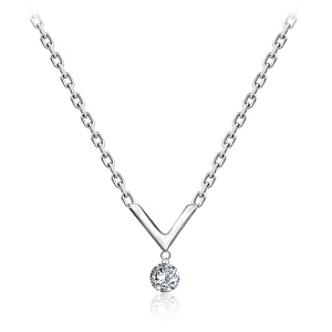 Колье из белого золота с фианитом, плетение якорное