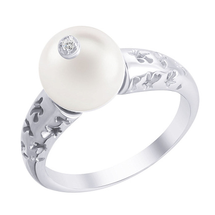 Кольцо из серебра с жемчугом, фианитом