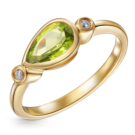 Кольцо из желтого золота с бриллиантами и хризолитом