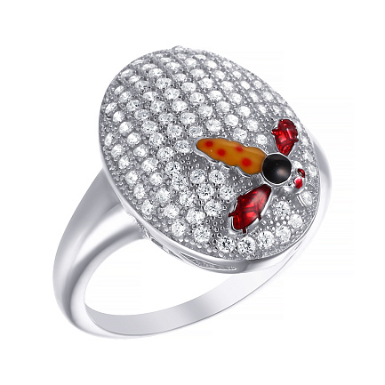 Кольцо из серебра с фианитом, эмалью