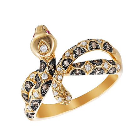 Кольцо из желтого золота с бриллиантами, сапфирами