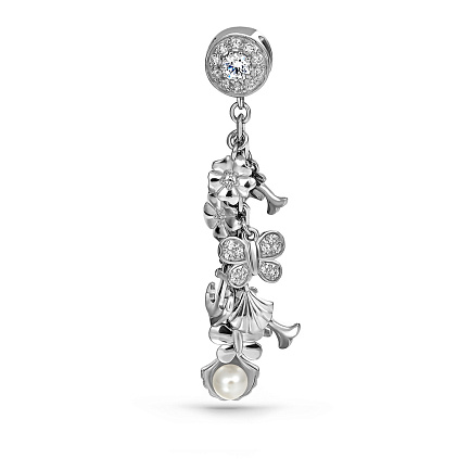 Подвеска из серебра с жемчугом, фианитом