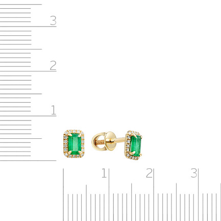 Пусеты из желтого золота с бриллиантами, изумрудами
