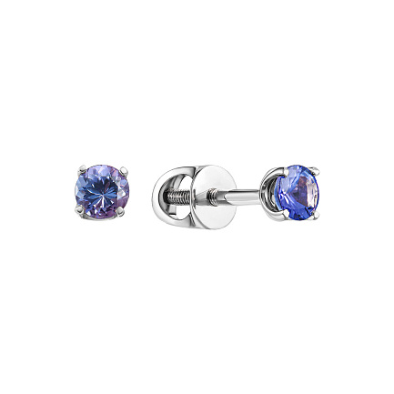Пусеты из белого золота с танзанитом