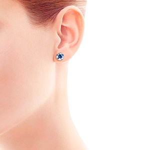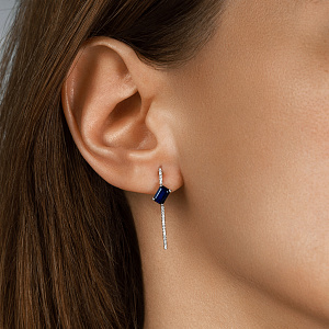 Пусеты из белого золота с бриллиантами и сапфирами