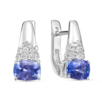Серьги из белого золота с бриллиантами, танзанитами