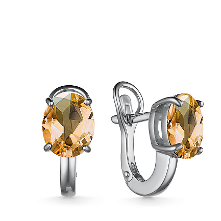 Серьги из серебра 925 пробы. Вставки: цитрин.