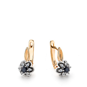Серьги с английским замком из красного золота с бриллиантами, сапфирами