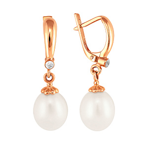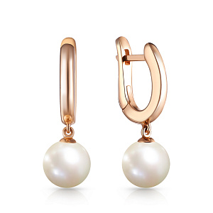 Серьги с английским замком из красного золота с жемчугом