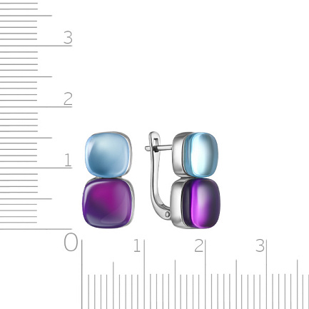 Серьги с английским замком из белого золота с топазом, аметистом