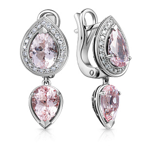 Серьги с английским замком из белого золота с морганитом, бриллиантами
