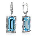 Серьги с английским замком из белого золота с бриллиантами, топазом