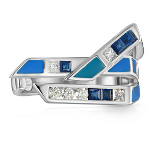 Серьги с английским замком из белого золота с бриллиантами, сапфирами, эмалью