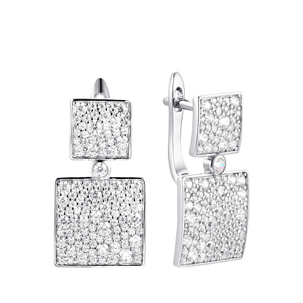 Серьги с английским замком из серебра с фианитами