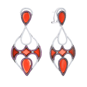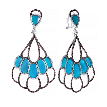 Серьги с агатом, фианитом из серебра